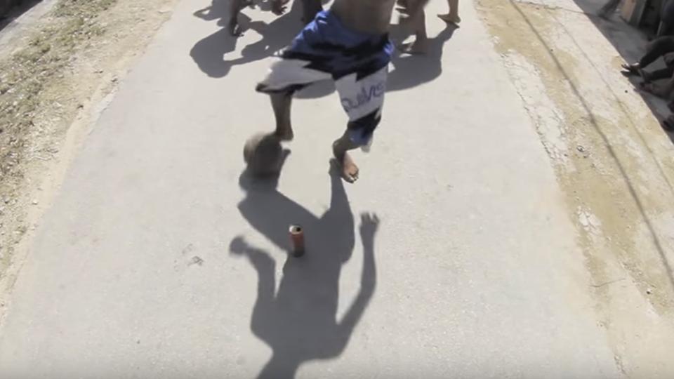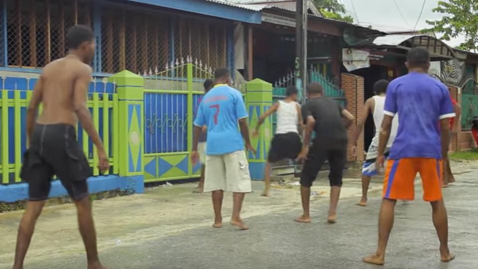 Salah satu aksi pemuda Papua saat memainkan permainan patah kaleng.Kaleng tersebut digunakan sebagai pengganti gawang. Permainan ini tak ubahnya seperti sepakbola namun tanpa aturan yang sempurna.