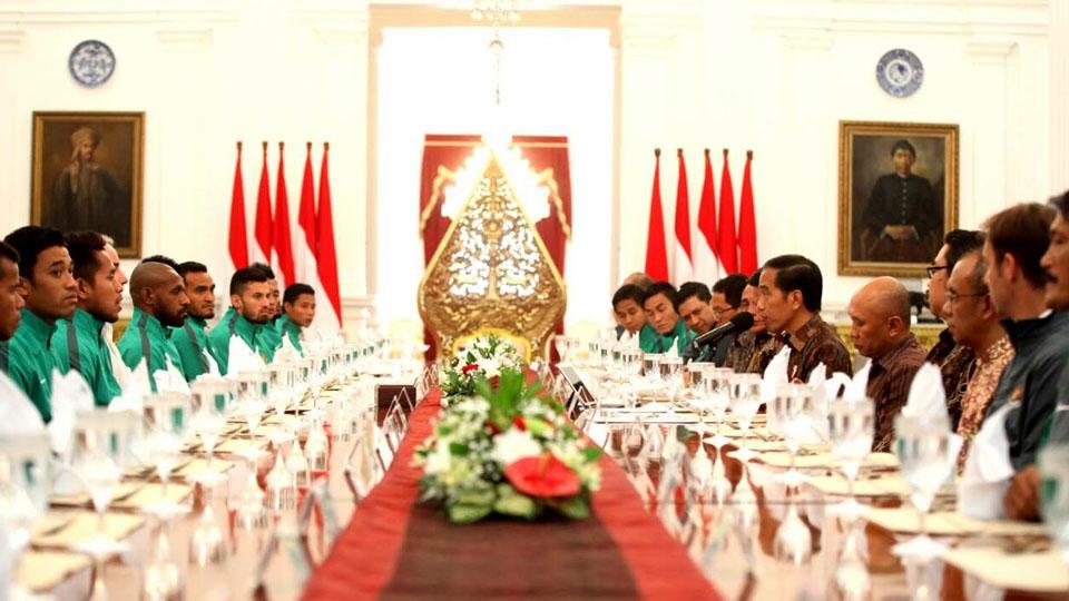 Hari ini, Senin (19/12/16) dijamu oleh Presiden RI, Joko Widodo di Istana Negara. Dalam kesempatan tersebut, para pemain Timnas Indonesia makan siang bersama, sekaligus menerima bonus senilai 200 juta Rupiah per pemain dari pemerintah.
