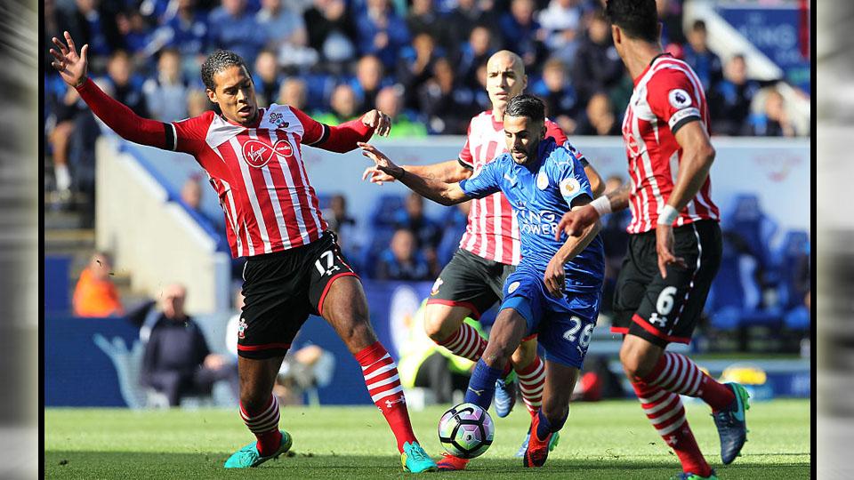 Aksi Riyad Mahrez saat menghadapi Southampton.Tim tuan rumah Middlesbrough tak akan memasang Victor Valdes yang pada laga sebelumnya kalah dari Manchester United. Valdes akan digantikan Guzan.