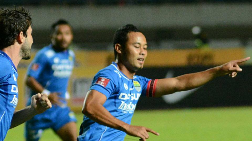 Kapten Persib, Atep melakukan selebrasi.Pemain yang akan memasuki musim kesembilannya bersama Persib ini mengatakan, pada musim depan Maung Bandung bertekad mempertahankan gelar juara Indonesia Super League (ISL) 2014.