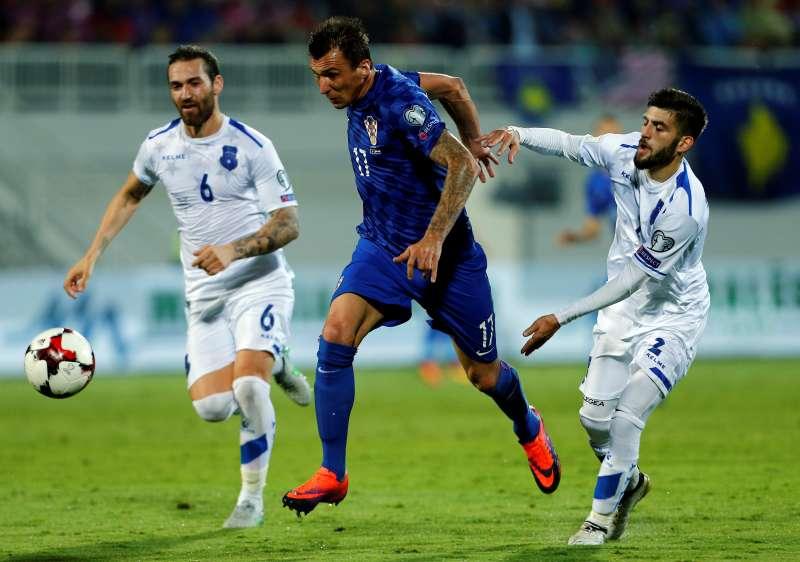 Mario Mandzukic (tengah) kala melawan Kosovo di Kualifikasi Piala Dunia, tahun lalu.Walau mengalami banyak kekalahan, lawan-lawan yang dihadapi Timnas Kosovo merupakan lawan yang berada di dalam ranking 100 besar FIFA, sehingga tidak heran bila saat ini Timnas Kosovo berada di atas Timnas Indonesia dalam urutan ranking.