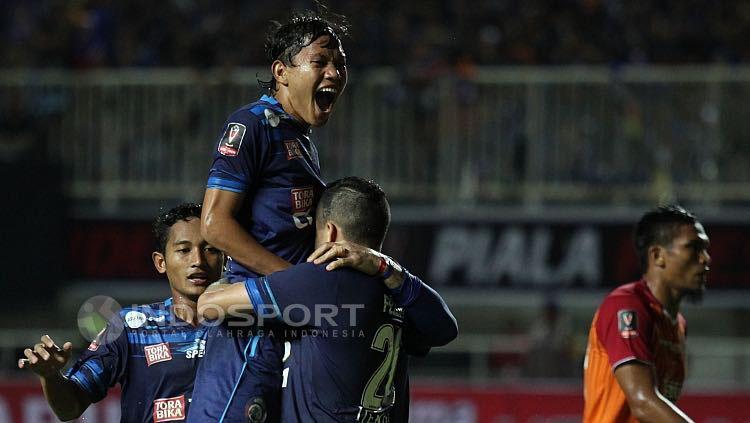Para pemain Arema FC merayakan gol ke gawang PBFC.Pengalaman menjadi Arema kian tahun kian matang. Buktinya, gelar Piala Presiden 2017 adalah salah satu dari puluhan trofi turnamen yang dimenangi Arema.