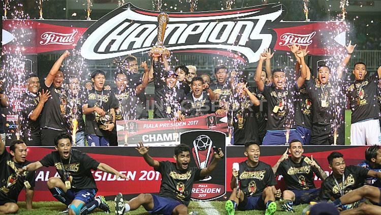 Arema FC berhasil menyabet gelar juara Piala Presiden 2017 usai menumbangkan Pusamania Borneo FC (PBFC) dengan skor telak 5-1 pada laga final yang berlangsung di Stadion Pakansari, Cibinong, Kabupaten Bogor, Minggu (12/03/17) malam WIB.