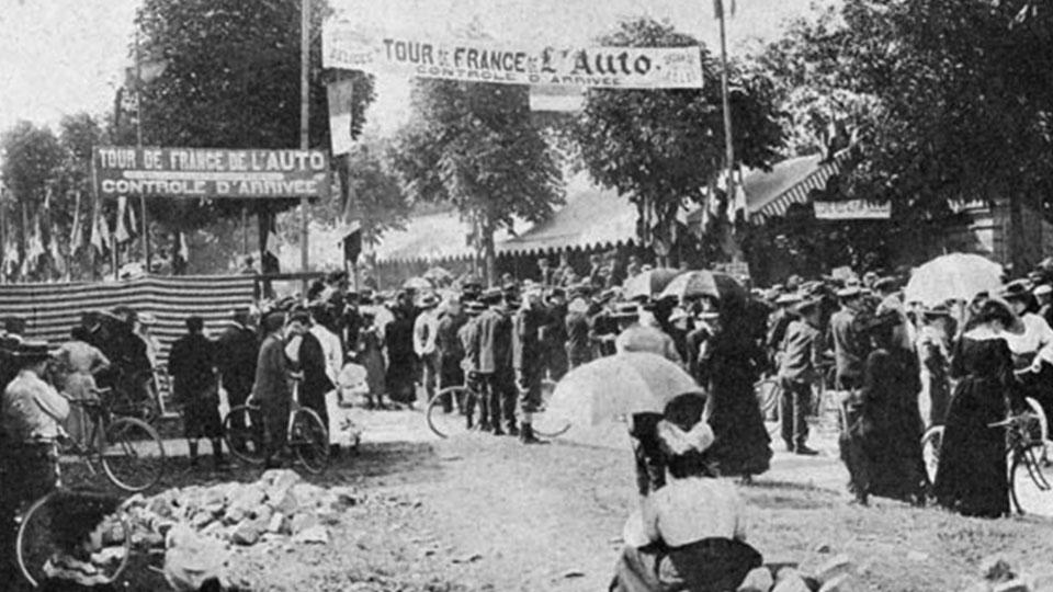 Sore hari pada tahun 1 Juli 1903, tidak kurang dari 60 pesepeda berkumpul di Cafe Au Reveil Matin, Montgeron, Paris. Mereka bersiap menjadi bagian dari sejarah balap sepeda pertama di dunia. 12 lusin pembalap ini akan mengawali 400 kilometer pertama dari total 2.428 kilometer jarak tempuh yang akan mereka hadapi.